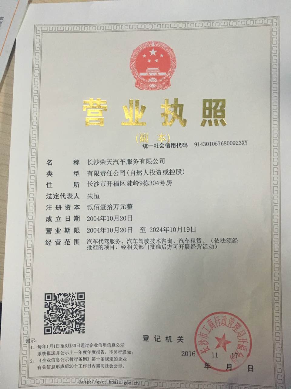 湖南長(zhǎng)沙榮天租車(chē)服務(wù)公司